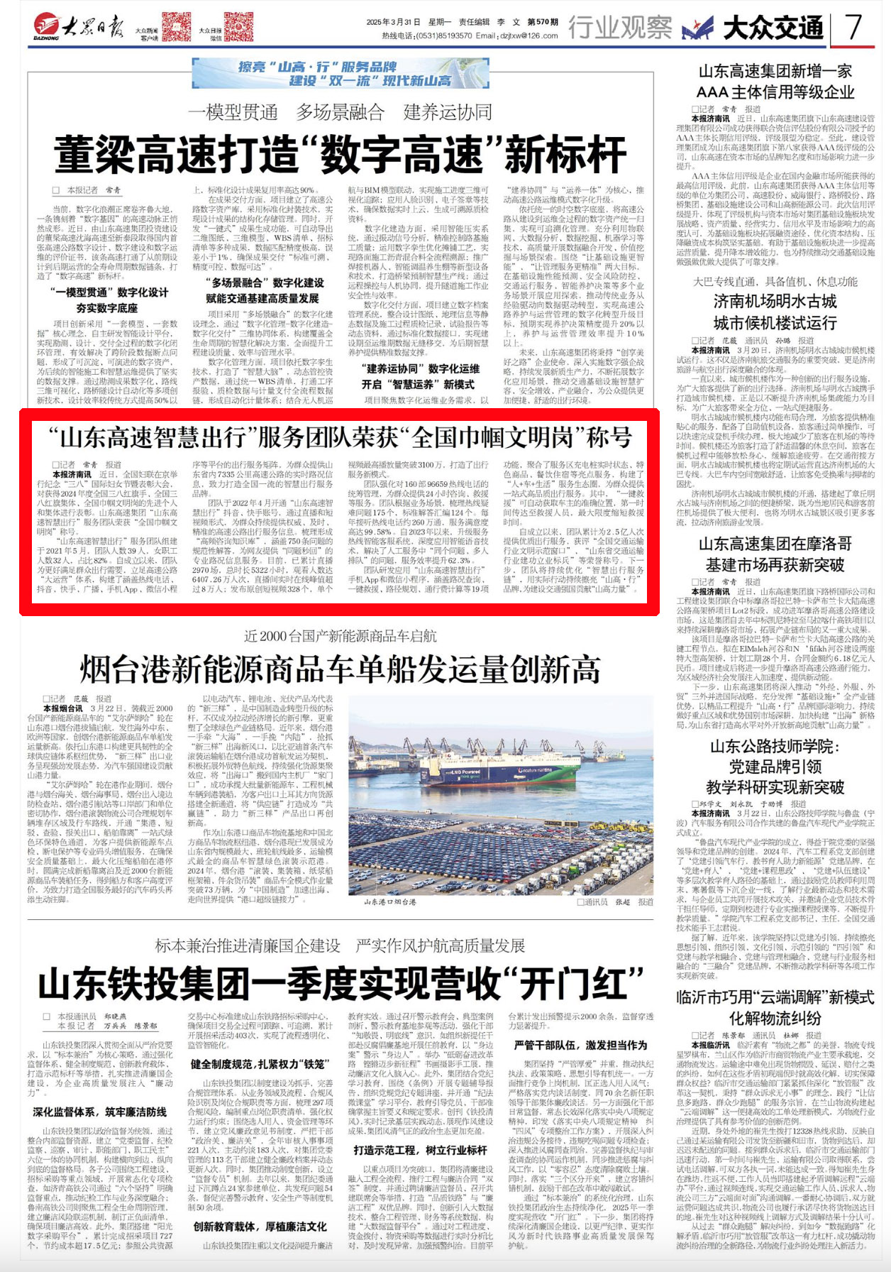 【大众日报】“山东高速智慧出行”服务团队荣获“全国巾帼文明岗”称号