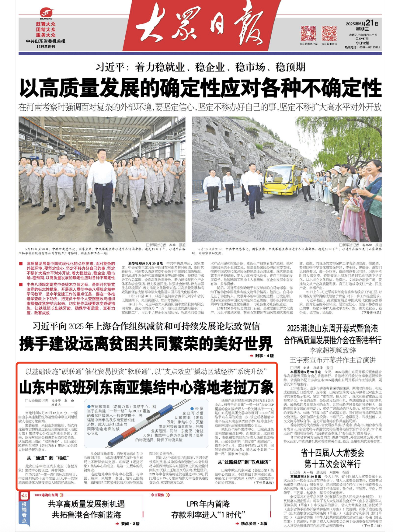 【大众日报】山东中欧班列东南亚集结中心落地老挝万象