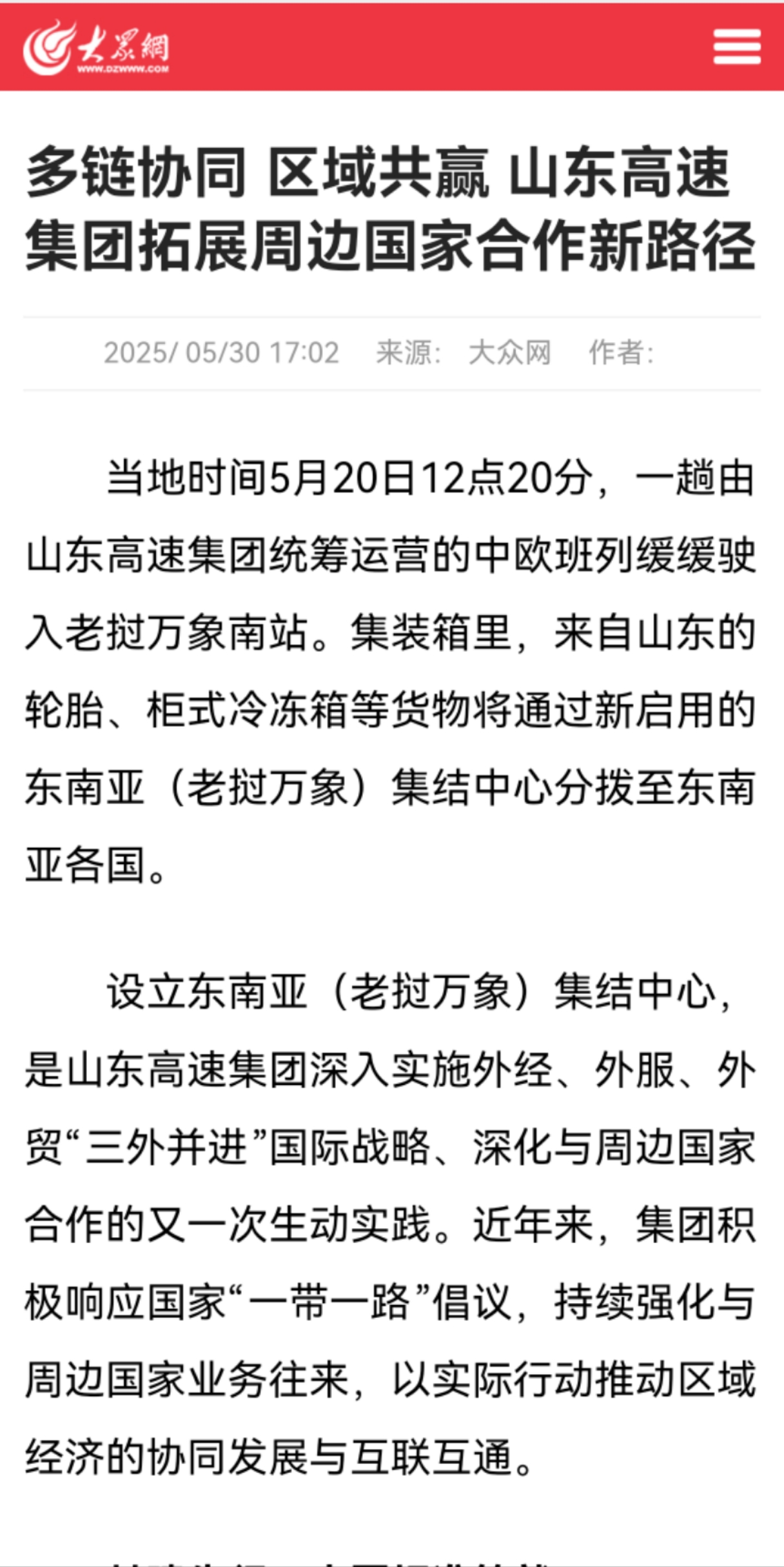 【大众网】多链协同 区域共赢 山东高速集团拓展周边国家合作新路径
